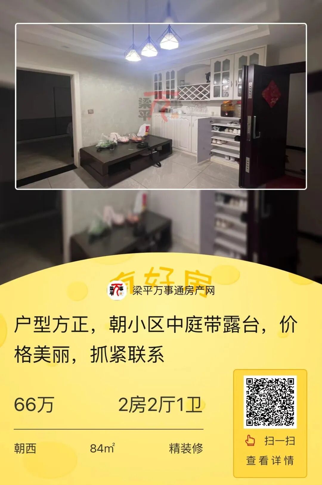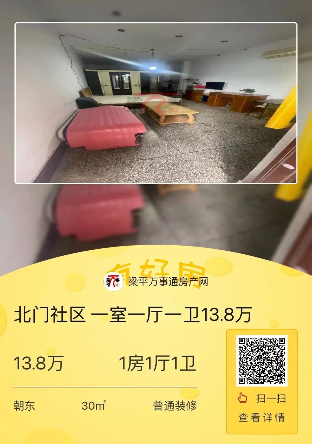 房源ID:1845023房源描述:一年能租几千元。小区名:亿联装修类型:普通装修(长按二维码查看详情)