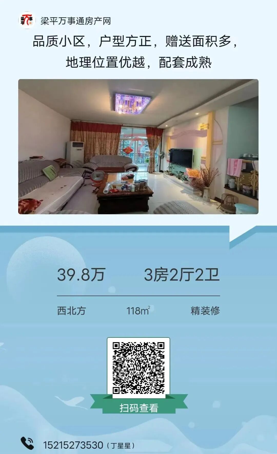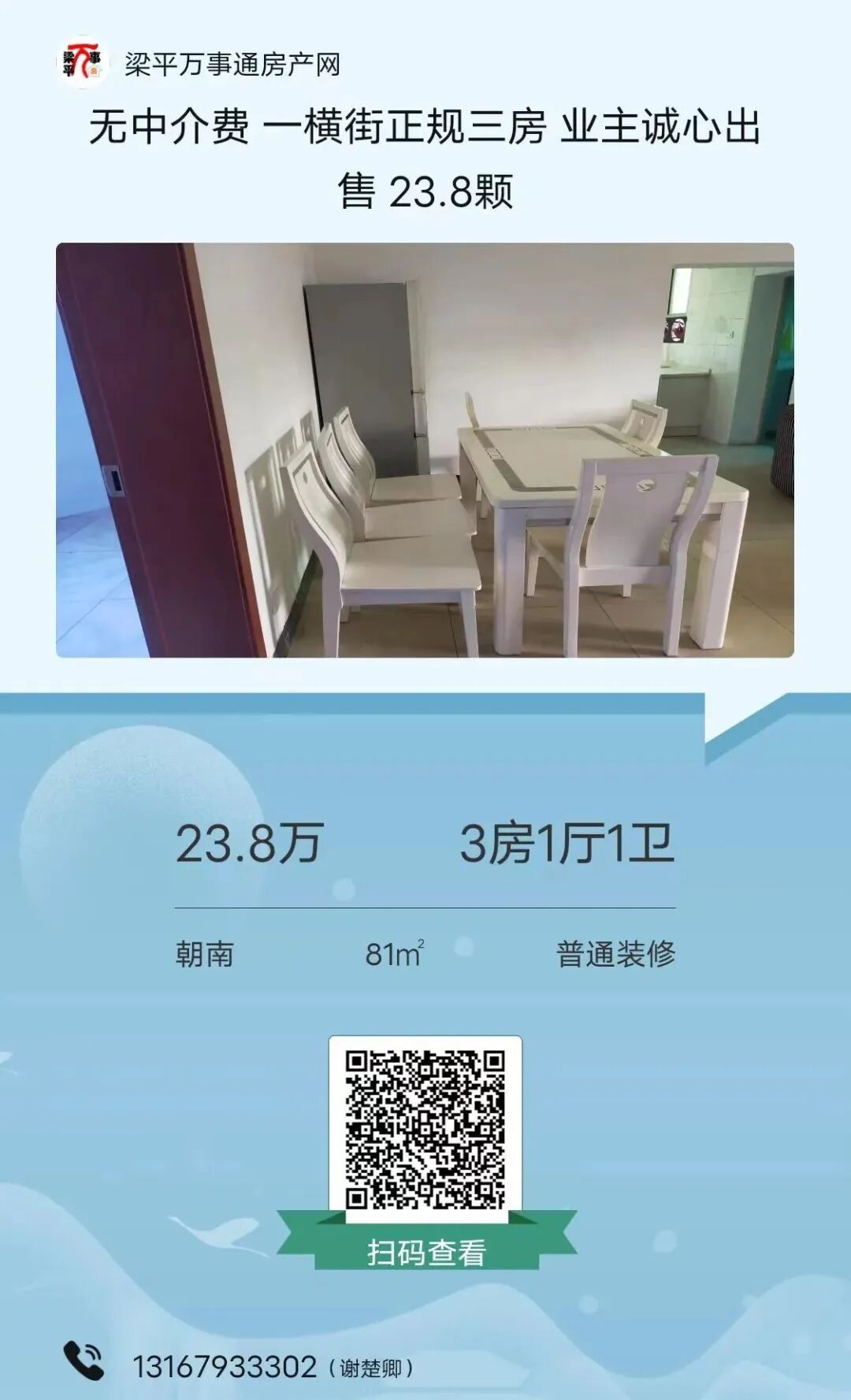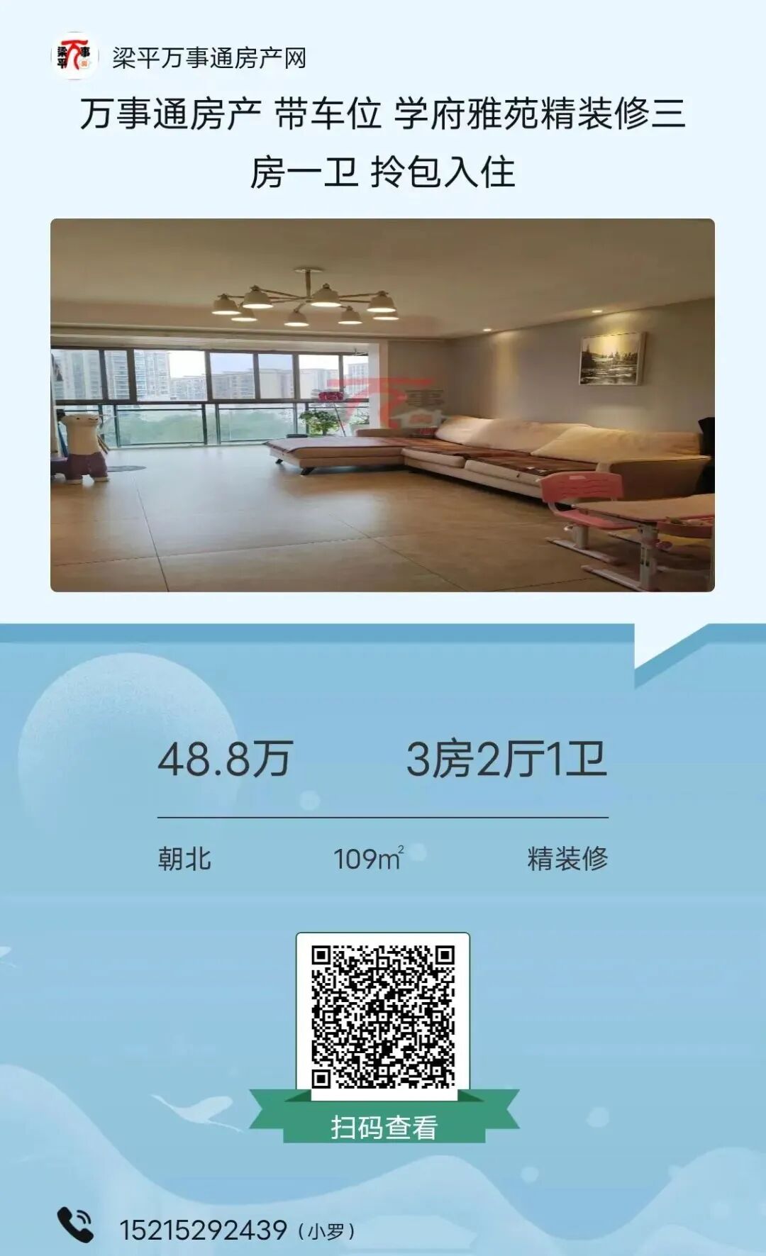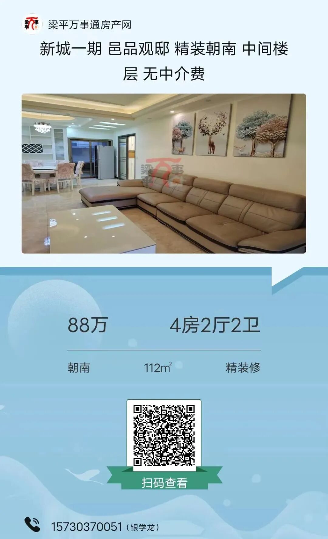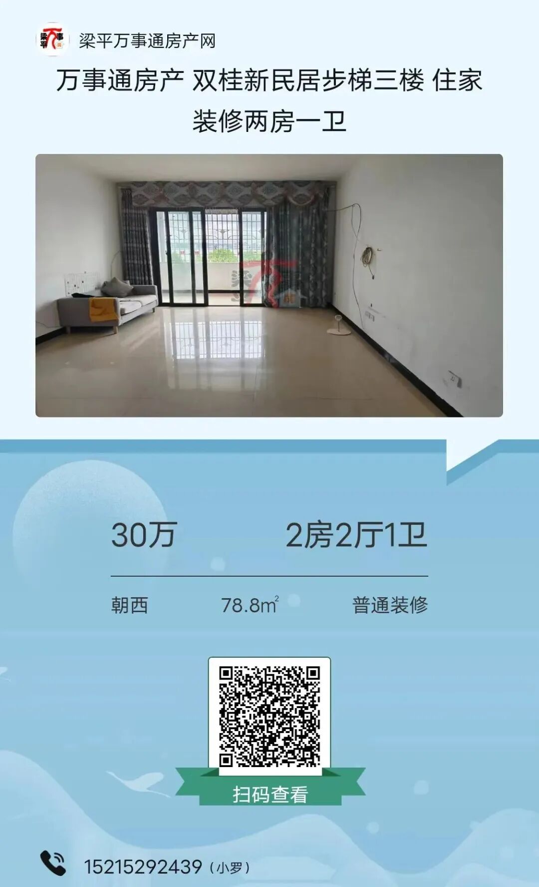 如有房子出售可在梁平万事通房产网发布,有问题可咨询客服:15523095160。